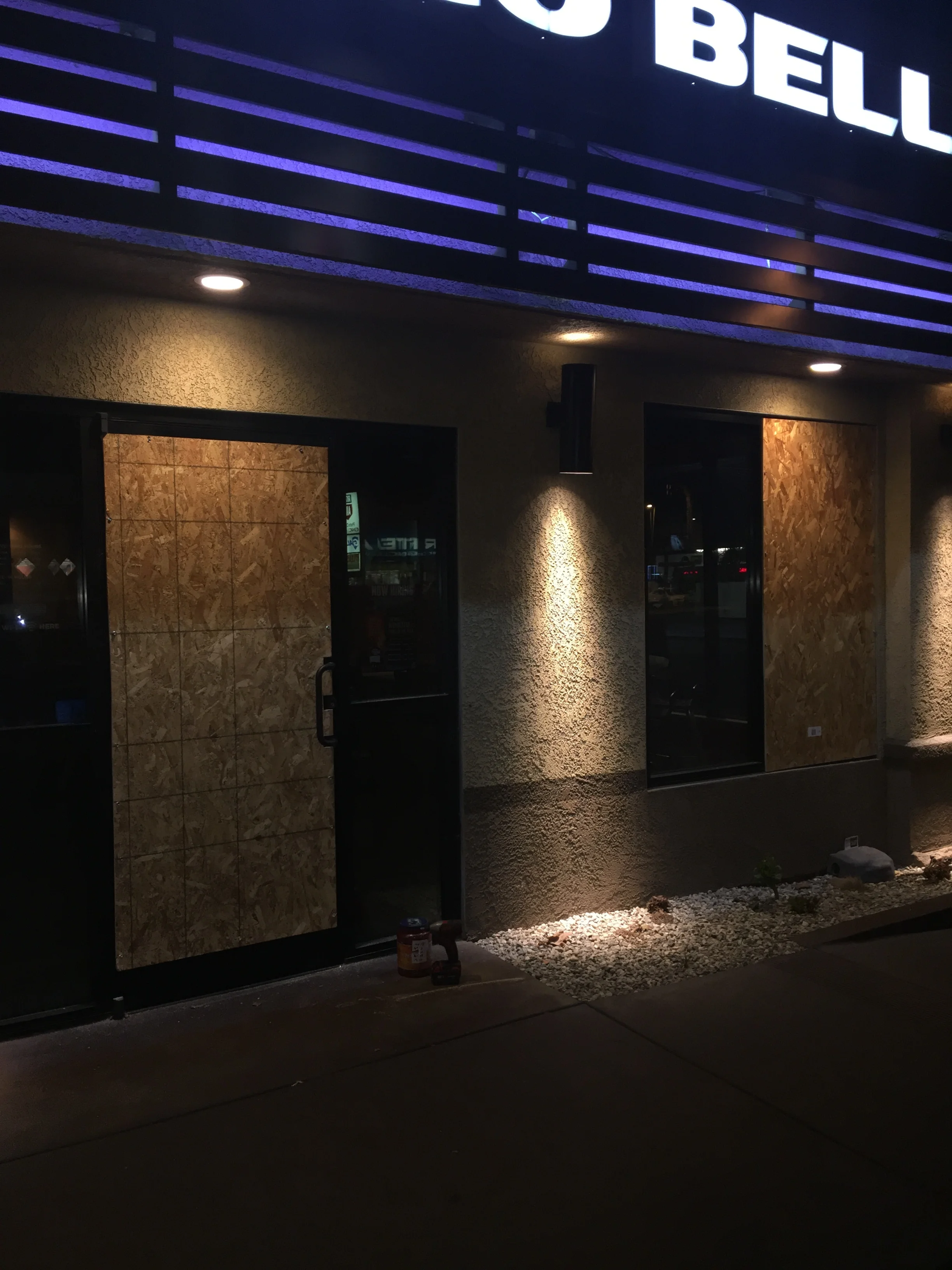 The Mexican Board-Up Sandwich... This is a way to secure a property without damaging the door or window. It is the board up solution of choice when we have access to the inside of the property. This allows the property owner to replace the glass and not the whole window or door.